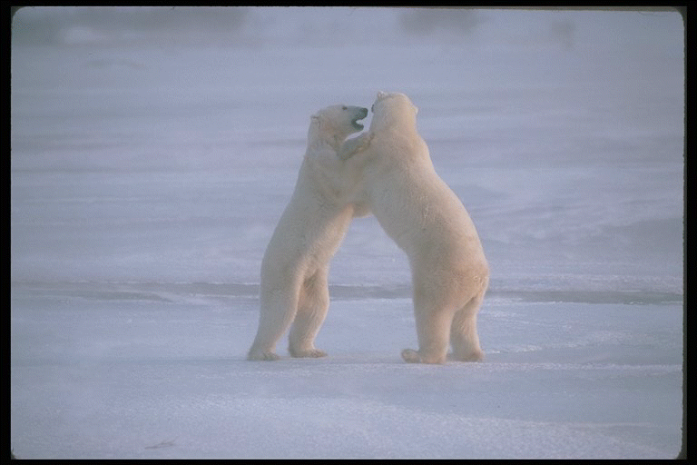 Two large polar bears. Are they dancing?