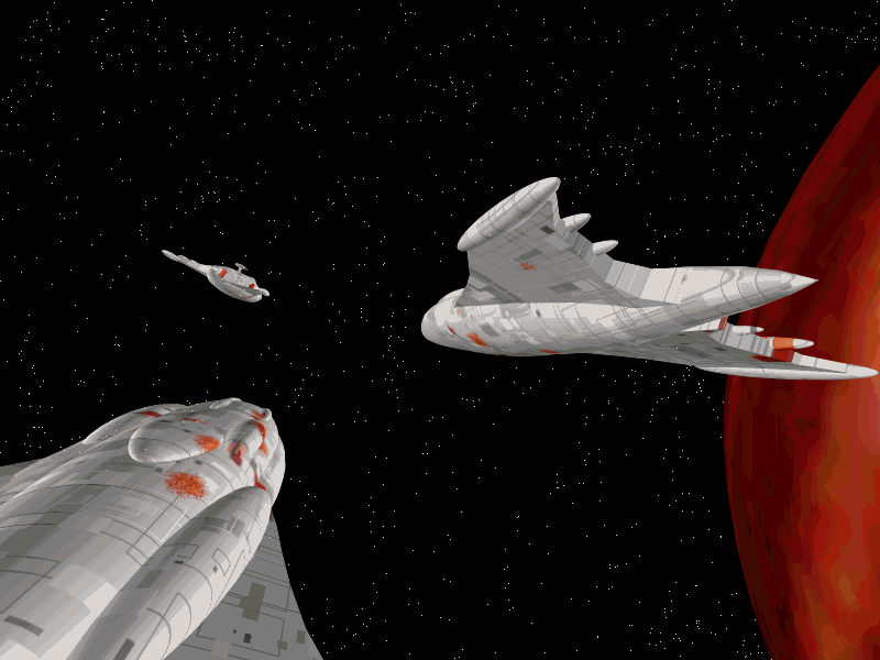 A raytraced drawing of futuristic spacecraft.