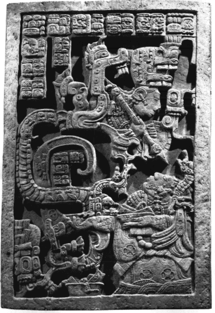 Clear greyscale scan of some ancient Mayan art.