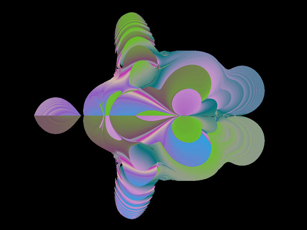 A mirrored fractal image with different colors on each side.