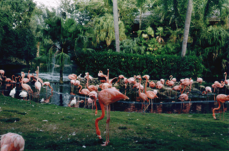 A picture of a bunch of Pink Flamingos.