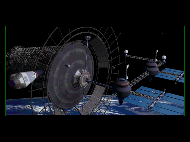 Ray Traced GIF of a space station. 640x480x256.
