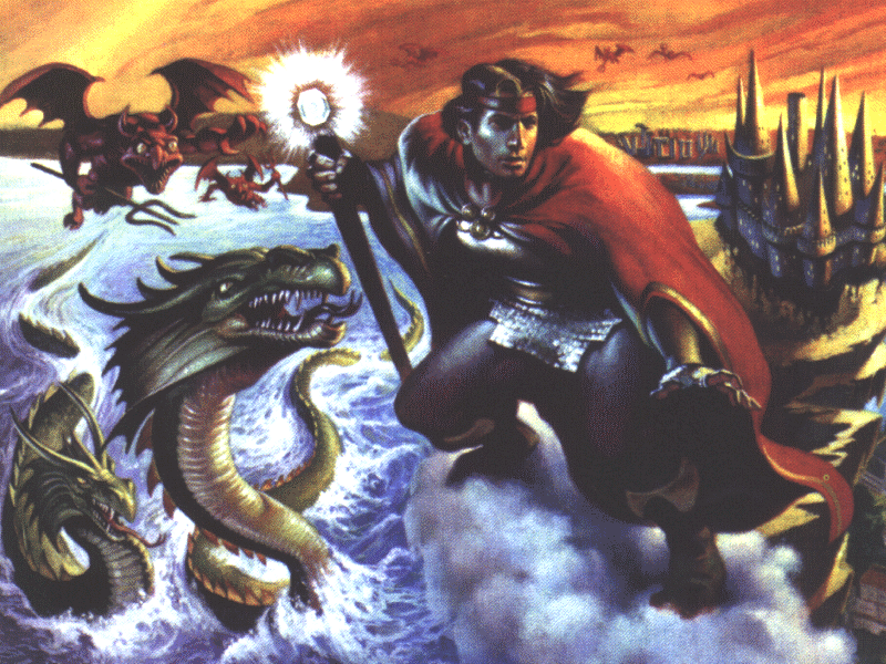 800X600X256 Mage riding cloud over serpent-infested waters.