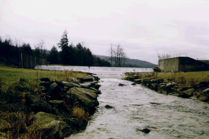 A picture of a small dam.