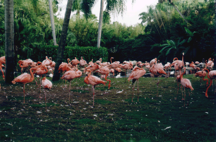A picture of a bunch of Pink Flamingos.